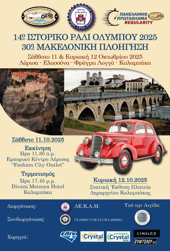 Το διοικητικό συμβούλιο της ΛΕΚΑΜ με χαρά σας ανακοινώνει την αφίσα του αγώνα καθώς και σας ενημερώνει και για την παράταση των συμμετοχών ανταποκρινόμενο στην υψηλή ζήτηση από οδηγούς οι οποίοι ενδιαφέρονται να συμμετέχουν παράλληλα με την εξασφάλιση περισσοτέρων δωματίων στο ξενοδοχείο DIVANI METEORA. Την ανανεωμένη δήλωση συμμετοχής μπορείτε να την κατεβάσετε από εδώ.